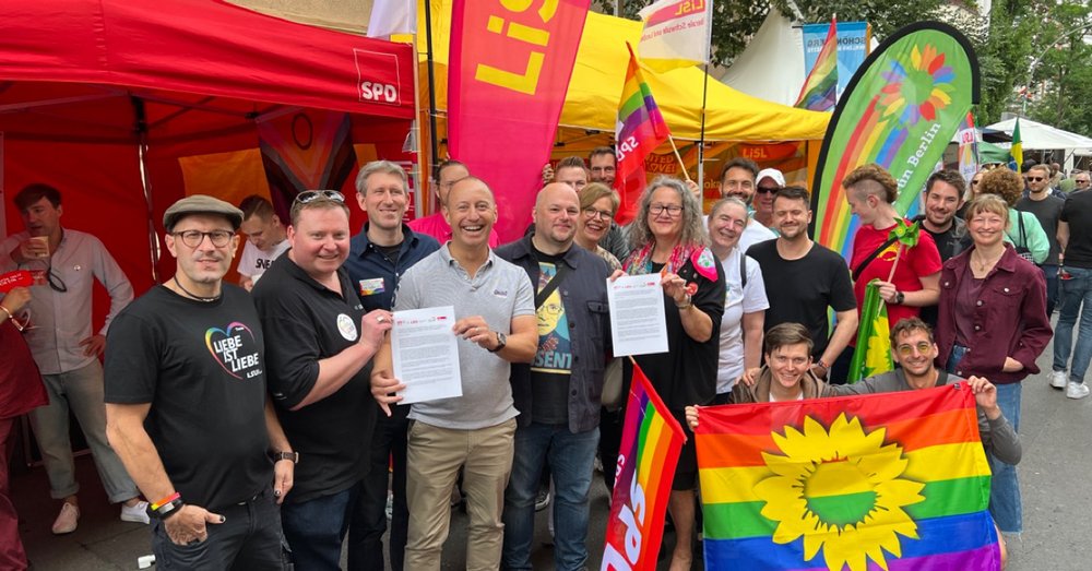 Wir von SPDqueer, LSU, QueerGrün und LiSL rufen die Vertreter:innen unserer Parteien in Bundestag und Bundesrat dazu auf, gemeinsam eine Änderung des Grundgesetzes voranzutreiben. In einer Zeit, in der queerfeindliche Übergriffe in Deutschland zunehmen, in der in vielen Staaten der Welt politische Rollbacks zu Lasten von Lesben, Schwulen, Bisexuellen, trans*- und intergeschlechtlichen sowie nicht-binären und queeren Menschen stattfinden, ist das ein überfälliges und wichtiges Zeichen. Die Ergänzung des Artikels 3 würde unmissverständlich deutlich machen, dass es hinsichtlich der Gleichbehandlung sexueller Orientierungen und geschlechtlicher Identitäten keinen Weg zurück gibt.