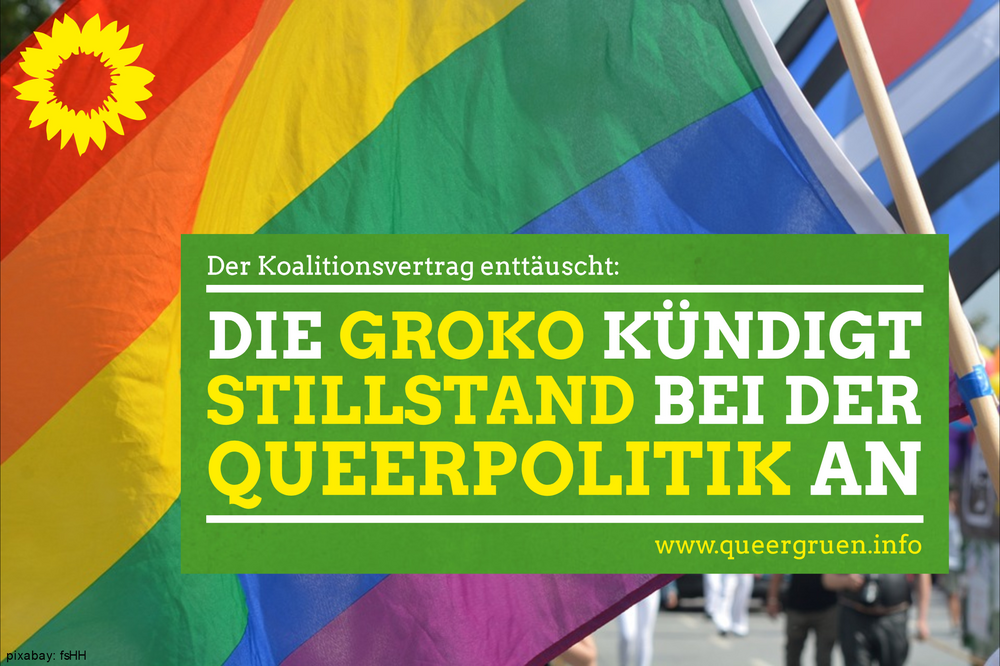 QueerGrün von BÜNDNIS 90/DIE GRÜNEN sieht im Koalitionsvertrag zwischen CDU, SPD und CSU eine visionslose Ankündigung der Stillstandspflege für die Lebenslagen von LGBTIQ*Personen.